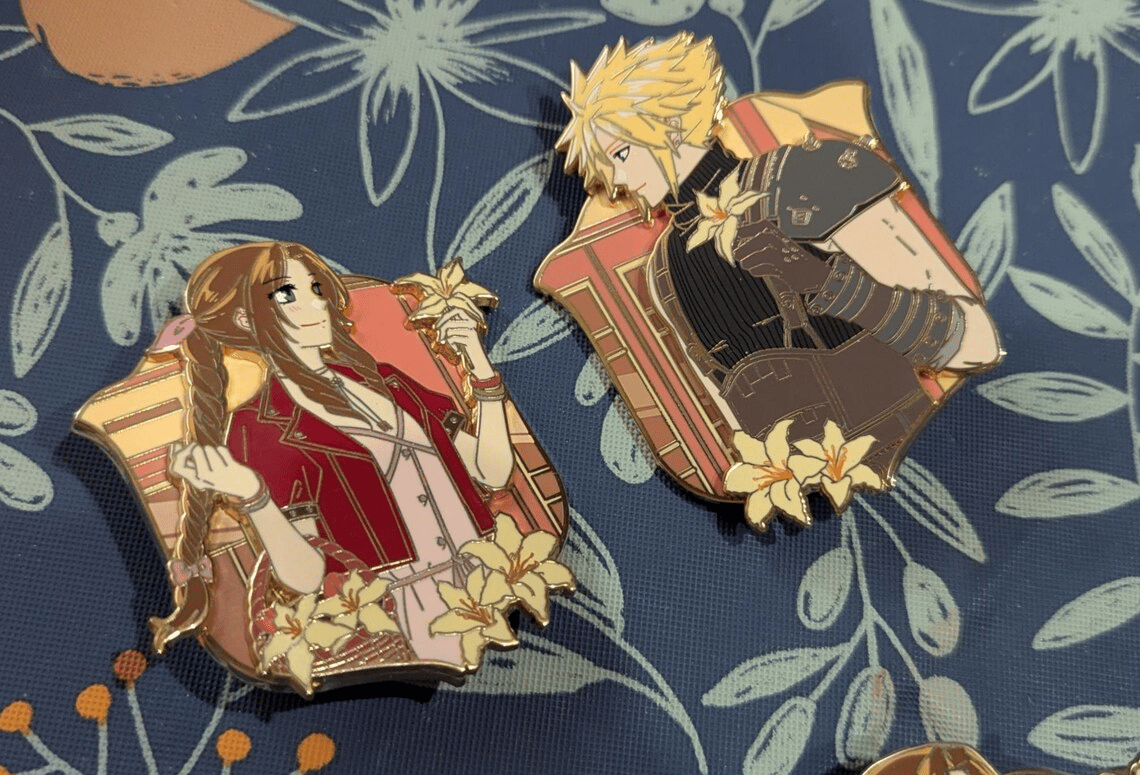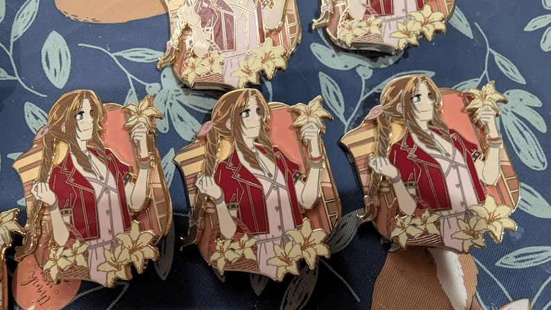 The C grade Aerith pins mostly have finish problems that you must reflect light on the pins to see. They are fine from straight on, and would be great for bags or boards.
