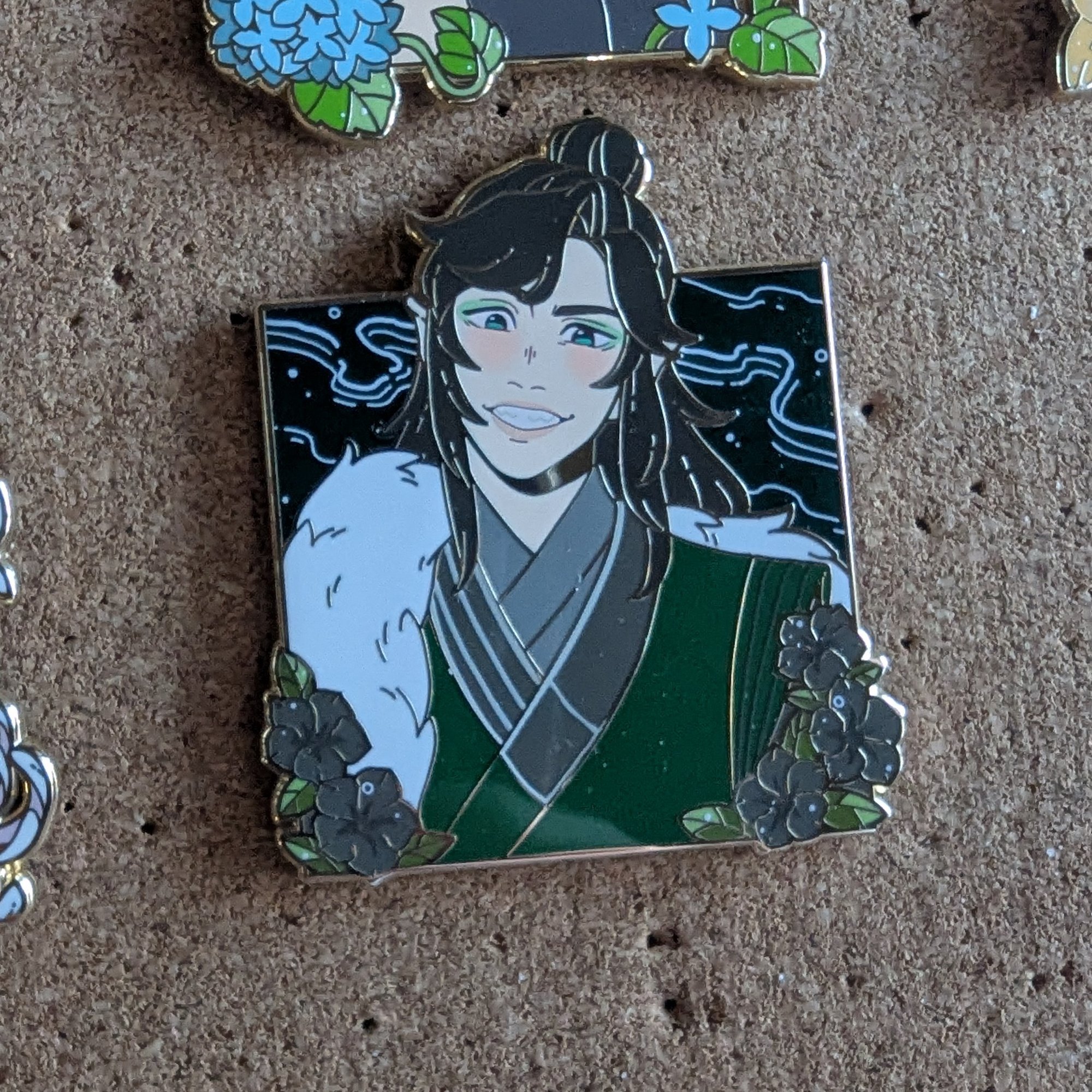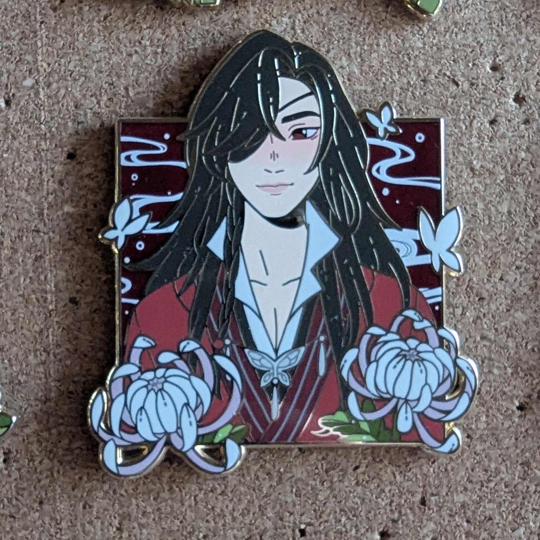 Size: Uniform 48mm square size for all pins in this series. Each pin varies total height depending on the design.